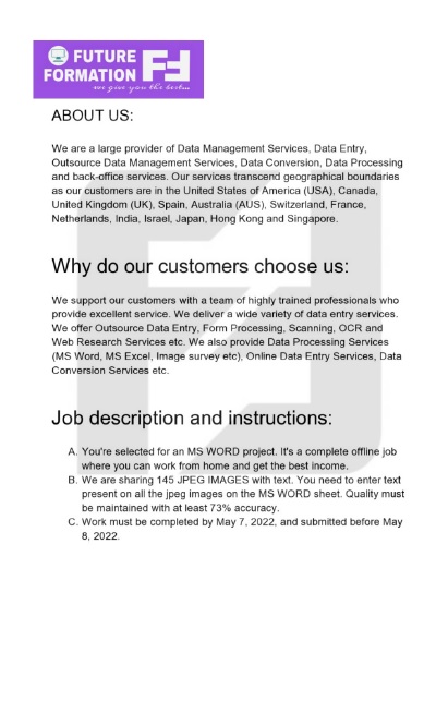 Future Formation Data Entry Job Fraud Be Alert
